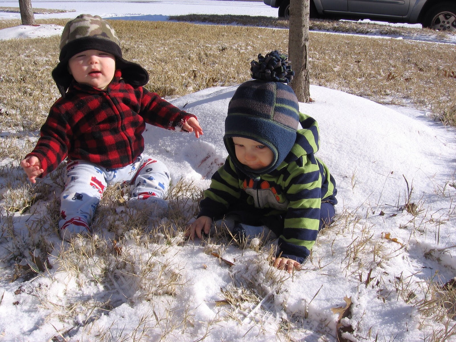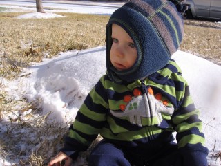 Here are a few pictures of Henry and Isaac mostly putting up with their moms taking pictures of them in the snow… When we got home on Saturday morning, there was still quite a bit of snow in our back yard. I think we actually had more snow at our home than at the Cantins’ house, but I wasn’t about to traumatize Isaac with another snow pose.