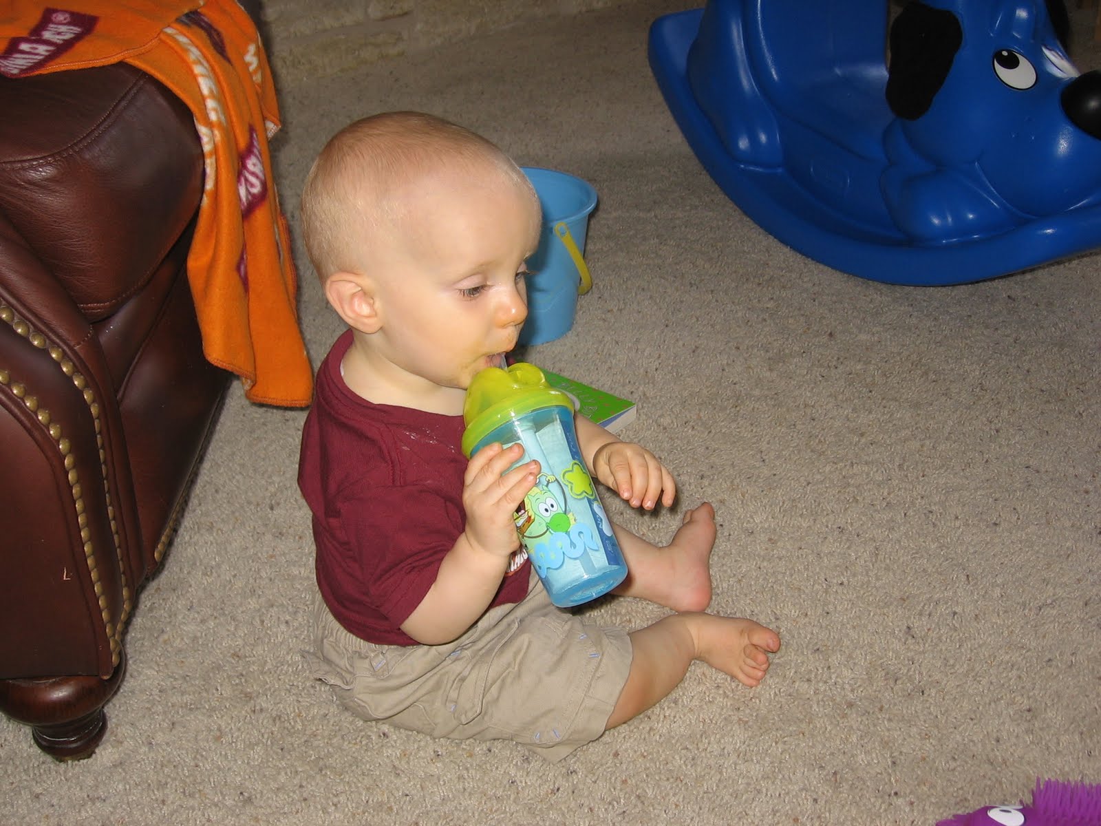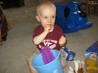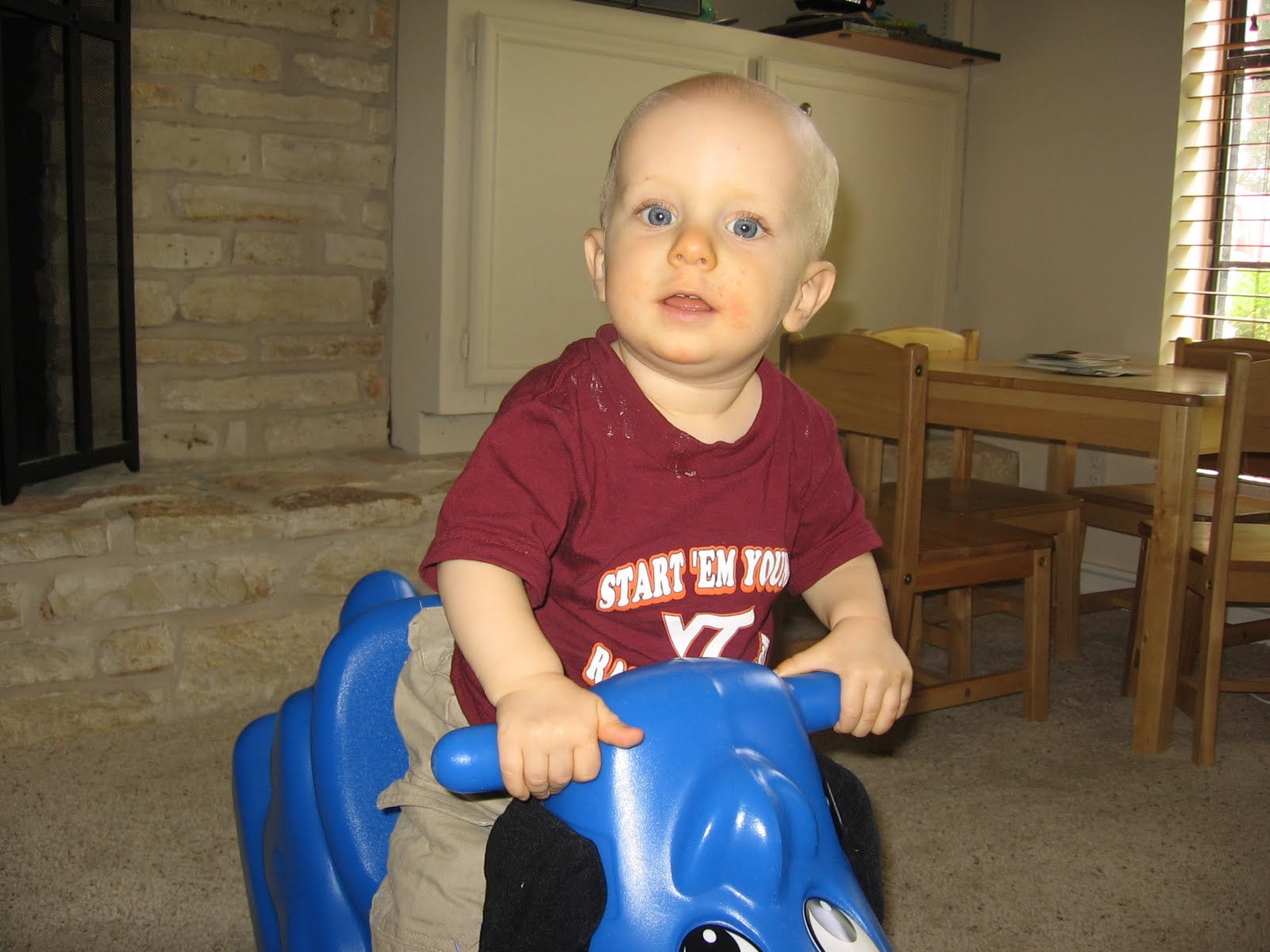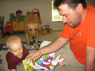 Isaac played on his rocking puppy for a while (a birthday gift from Aunt Kristin and Uncle Dave).