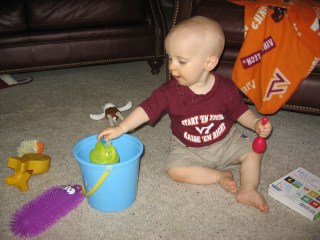 The best part, however, may have been that the bucket was a *container*. We all know how much Isaac likes to put things into containers these days!