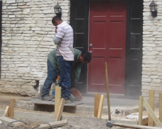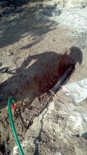Trying to run conduit under the sidewalk, digging the hole…