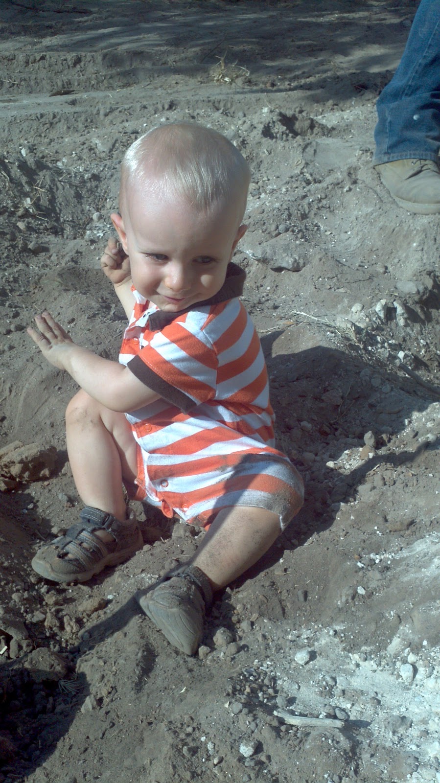 Isaac wanted to help Daddy dig.