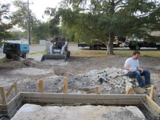 Lots happened in a positive direction on Friday and over the weekend. Friday, the guys came to cut the post-tension cables, the house did not implode, and most of the rebar was placed to be able to pour concrete early this week… maybe even Monday if the post-tension guys come back early enough! Here’s a shot of the “team” approach to cutting the cables: