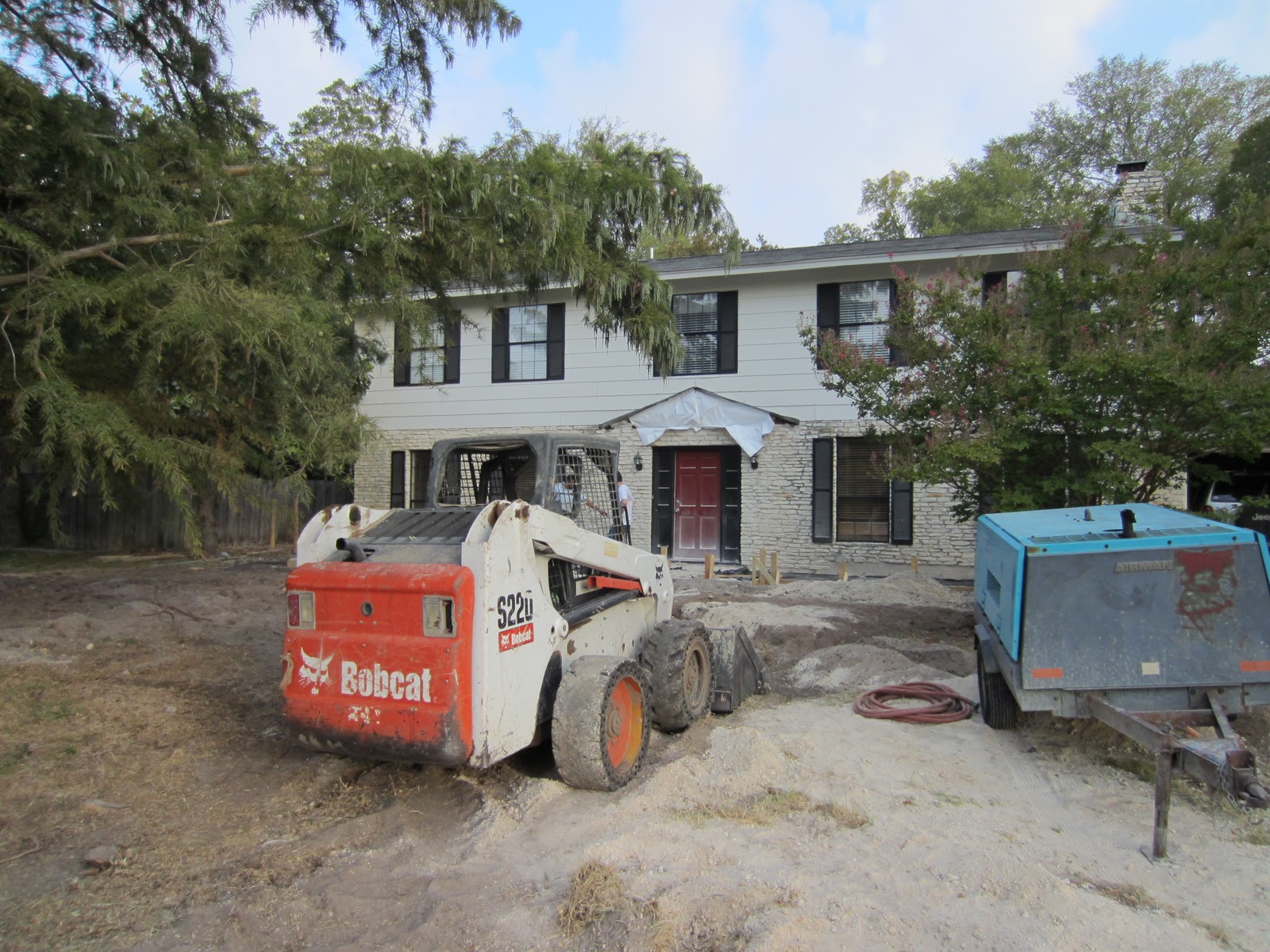 We had lunch and I ran a few errands, hoping to miss the jackhammer. My timing was off. I got home just in time! They brought an enormous generator, parked it in the front yard, and hooked up a huge pneumatic jackhammer.