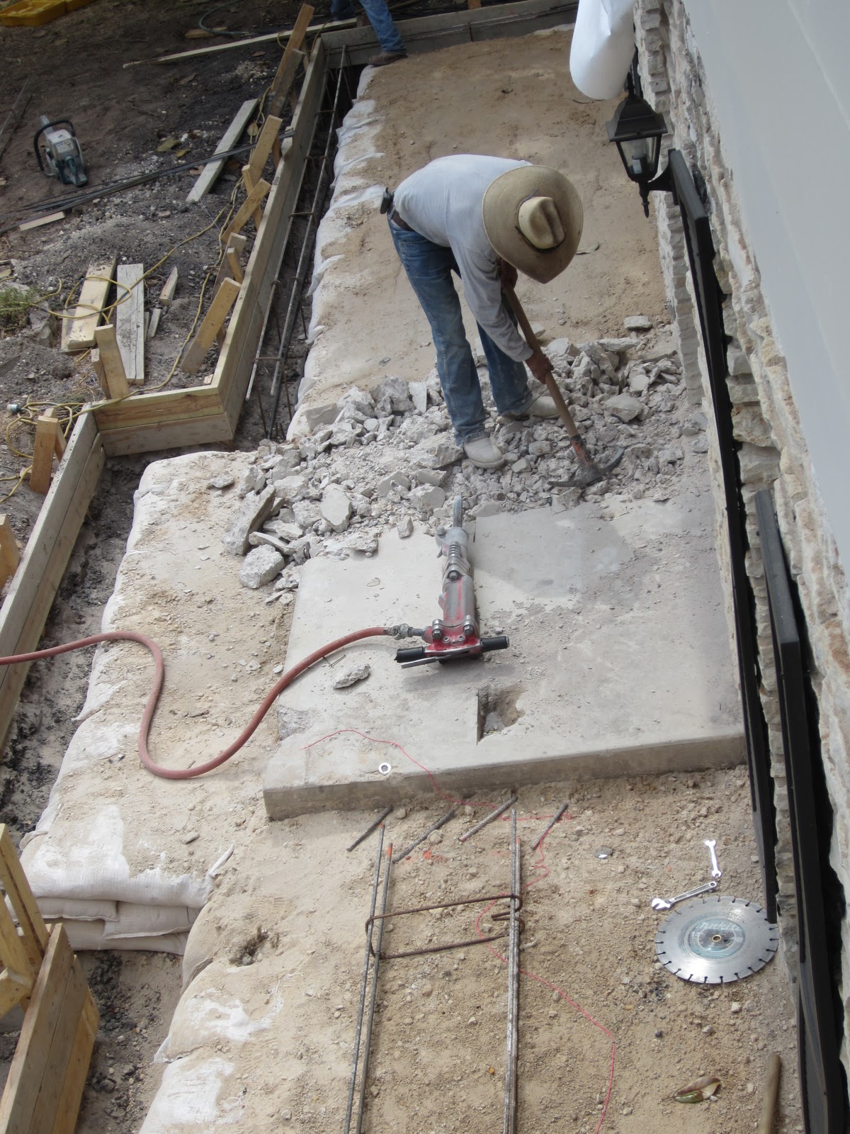 Then, they used a jackhammer to chip away around some of the cables to be sure they were still in good shape. They were, thankfully.