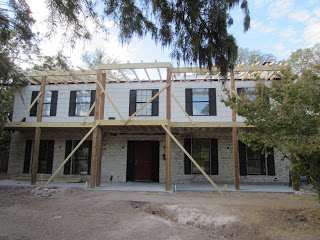 The guys will be out tomorrow to tear off the siding and install the foam board. On Friday they will install the two doors upstairs and begin the siding installation. On Monday or Tuesday they will install the trim around the columns. The windows won’t be here for another week and a half or so but they will be the last to install.