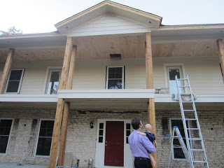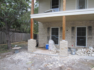 The stonework started at the other side of the porch, so you can see what the bases of the columns are going to look like now. Getting closer!!!