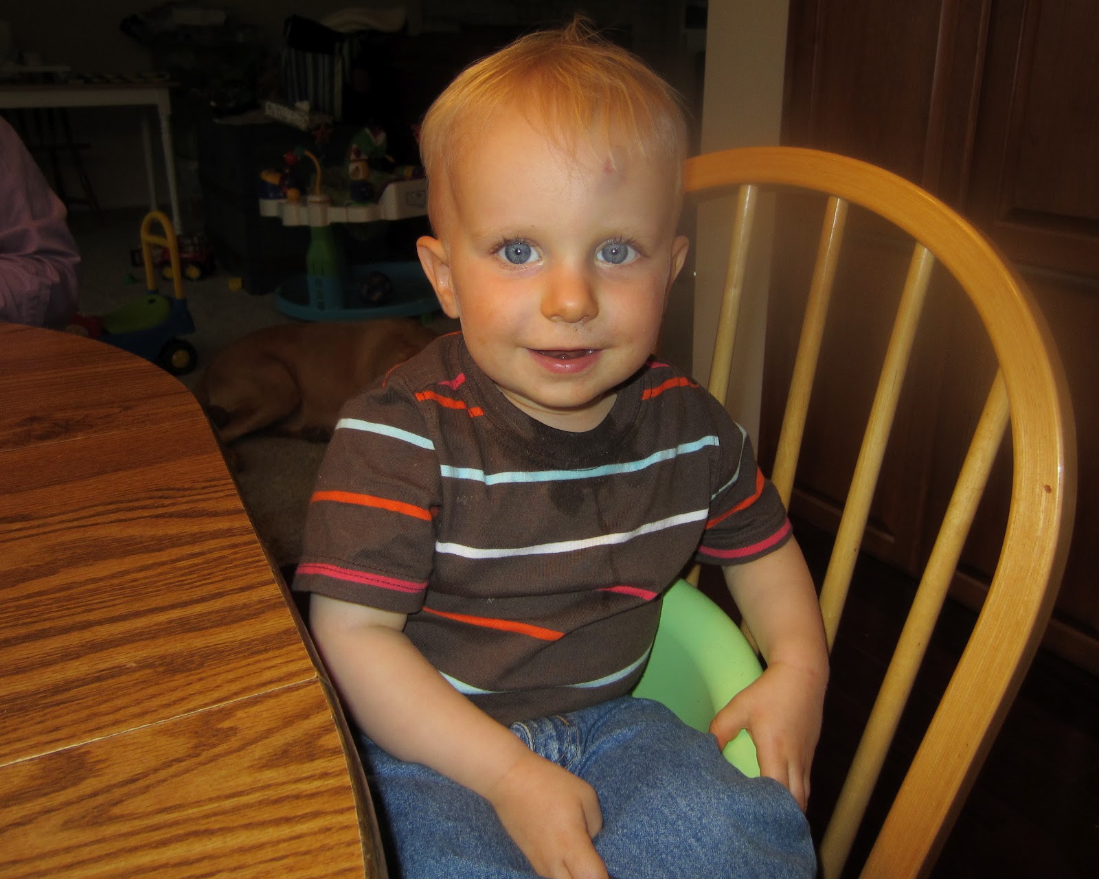 New bang on the forehead. Maybe I should just make him wear a helmet at all times?