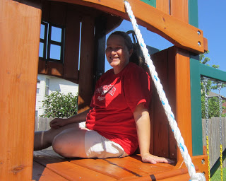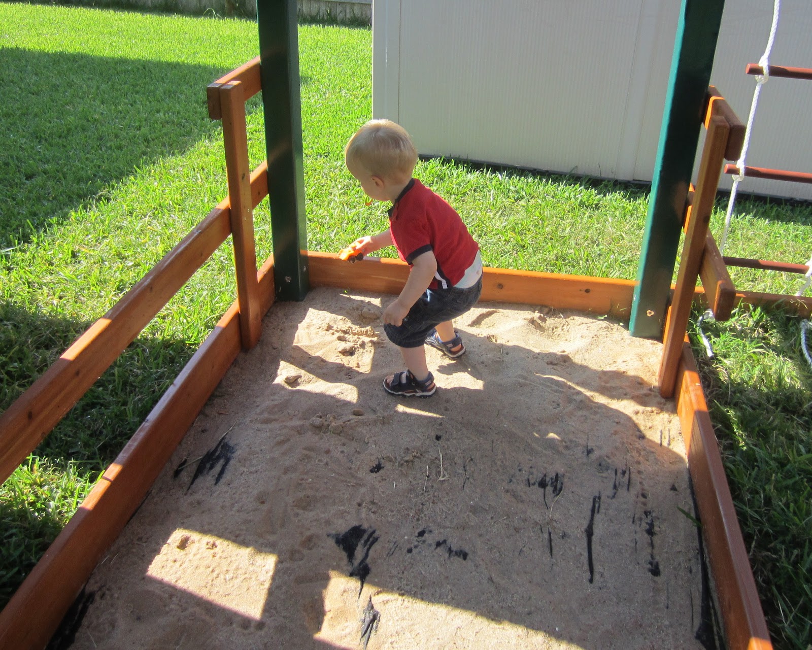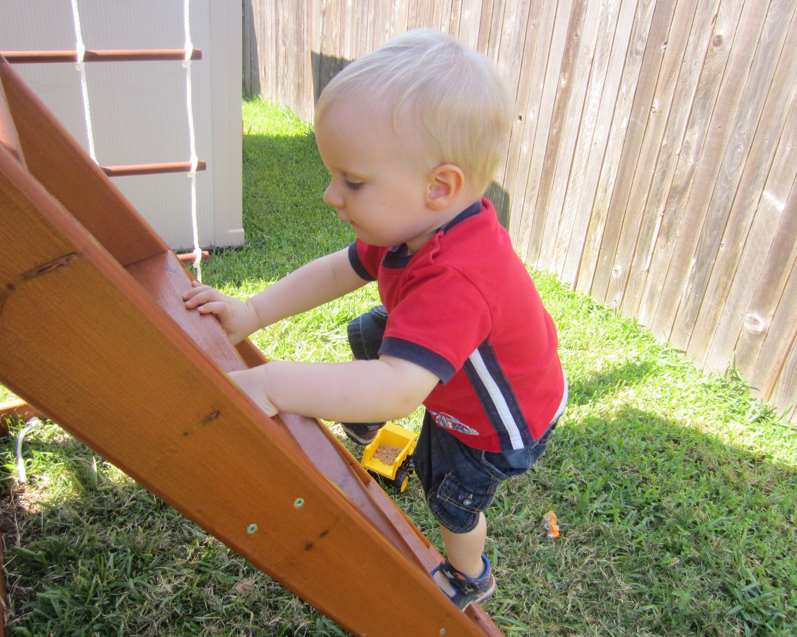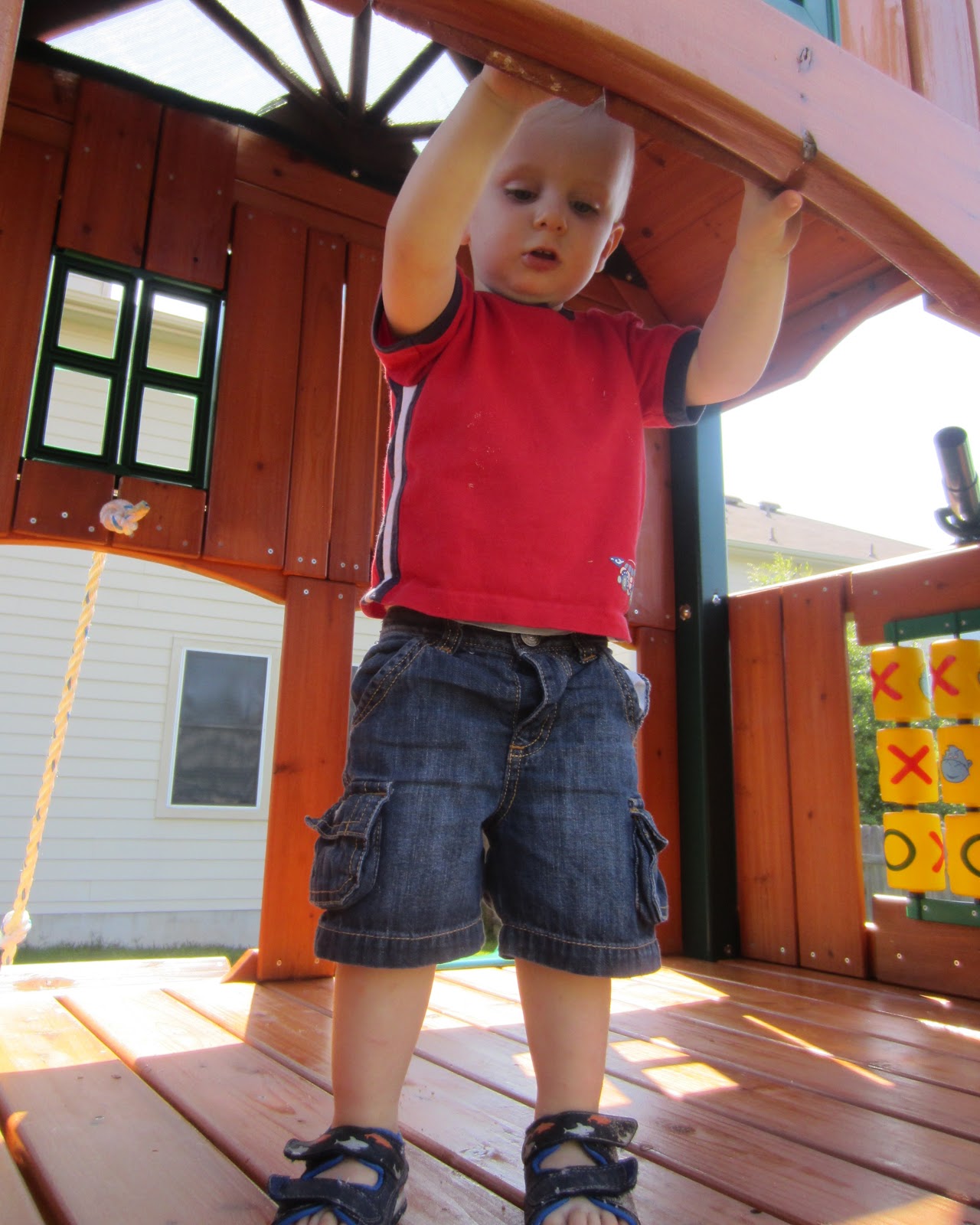 Yesterday, Isaac awoke before the sun actually rose. He was in super-cranky mode by 8:00 a.m. My wonderful friend Candy invited us over so I wouldn’t go insane. Her husband has been building an incredible playscape in their back yard.