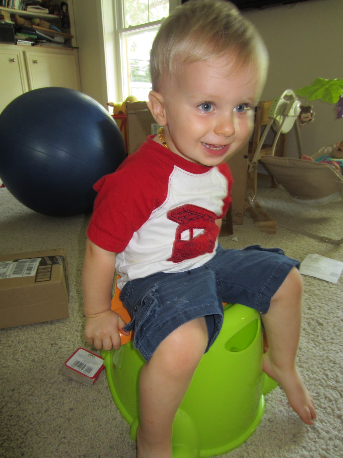 Yesterday, Isaac’s new potty arrived (thanks, Amazon)!! So far, he has carried it through every room in the house, stood on it (and fallen off) and then sat on it. I am glad I bought it a few weeks before I was actually planning to start the toilet teaching process. Once it is no longer so novel that the potty has to go into every room with Isaac, I think it will be easier.