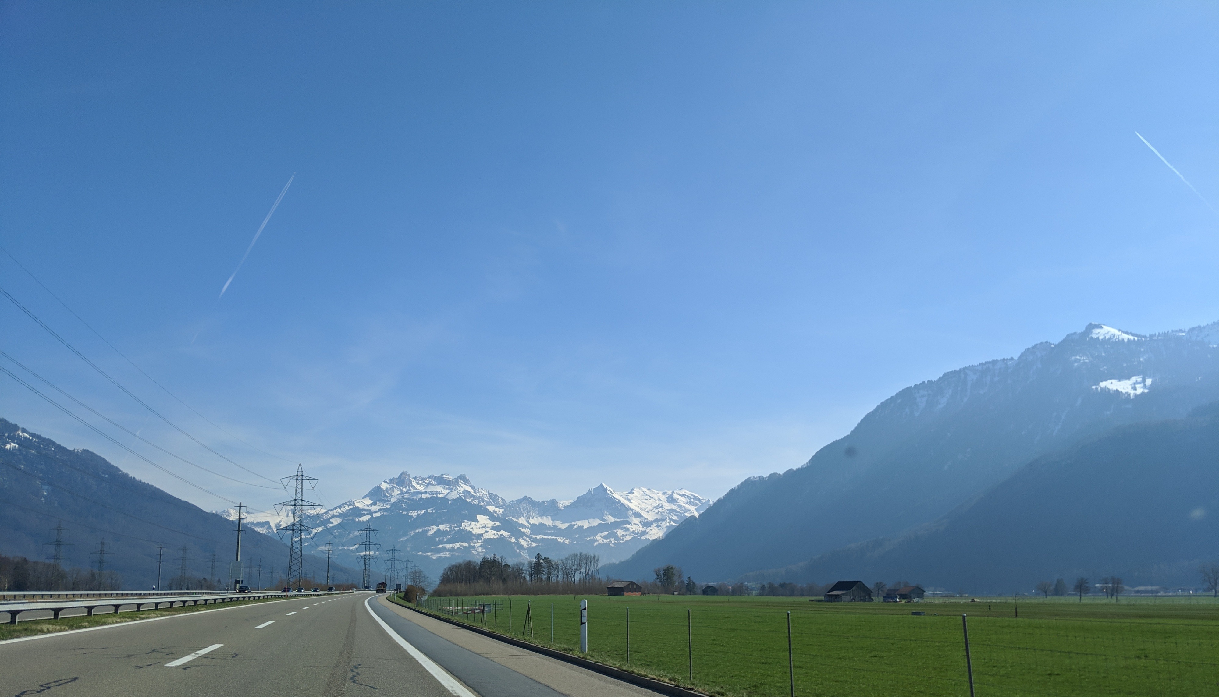 Our flight was delayed a bit, but we landed, collected our car, and were on our way. This was the view from the car as we were leaving Zurich and headed east.