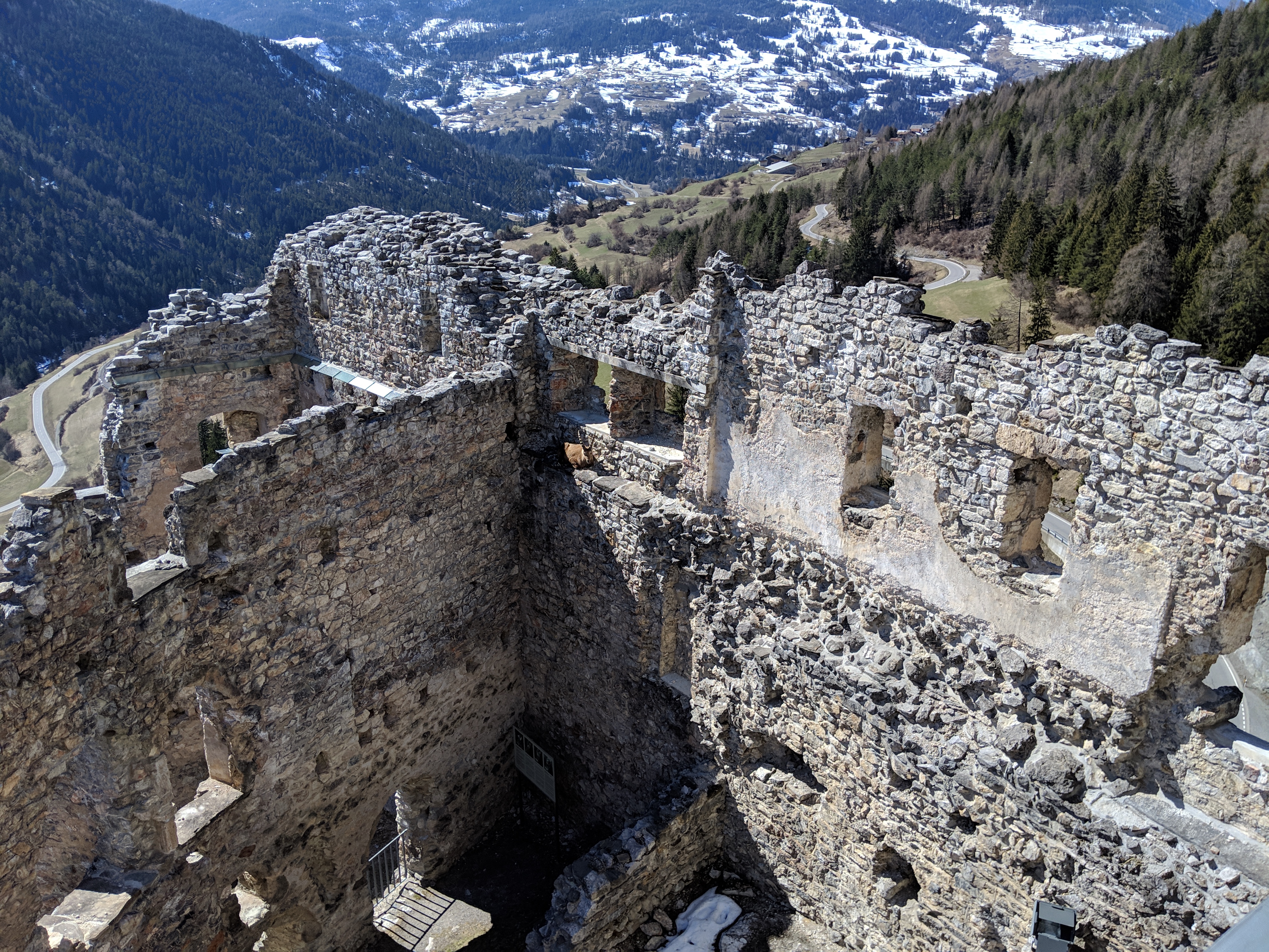 We stopped to have a picnic lunch at Burgruine Belfort – which is a ruined castle in Switzerland. Firstly, the view was amazing. We took a short hike up to the castle. I was reminded of several of our Treehouse friends (and our director Traci in particular) as we walked up past fast-flowing waterfalls, clambered over downed trees, and soaked up our beautiful surroundings. When we got to the castle, we found an IBEX resting quite comfortably along the top of the wall. We were so surprised! We took a few photos and tried not to disturb him. He was pretty sure he could take us out, though, so he wasn’t too concerned.