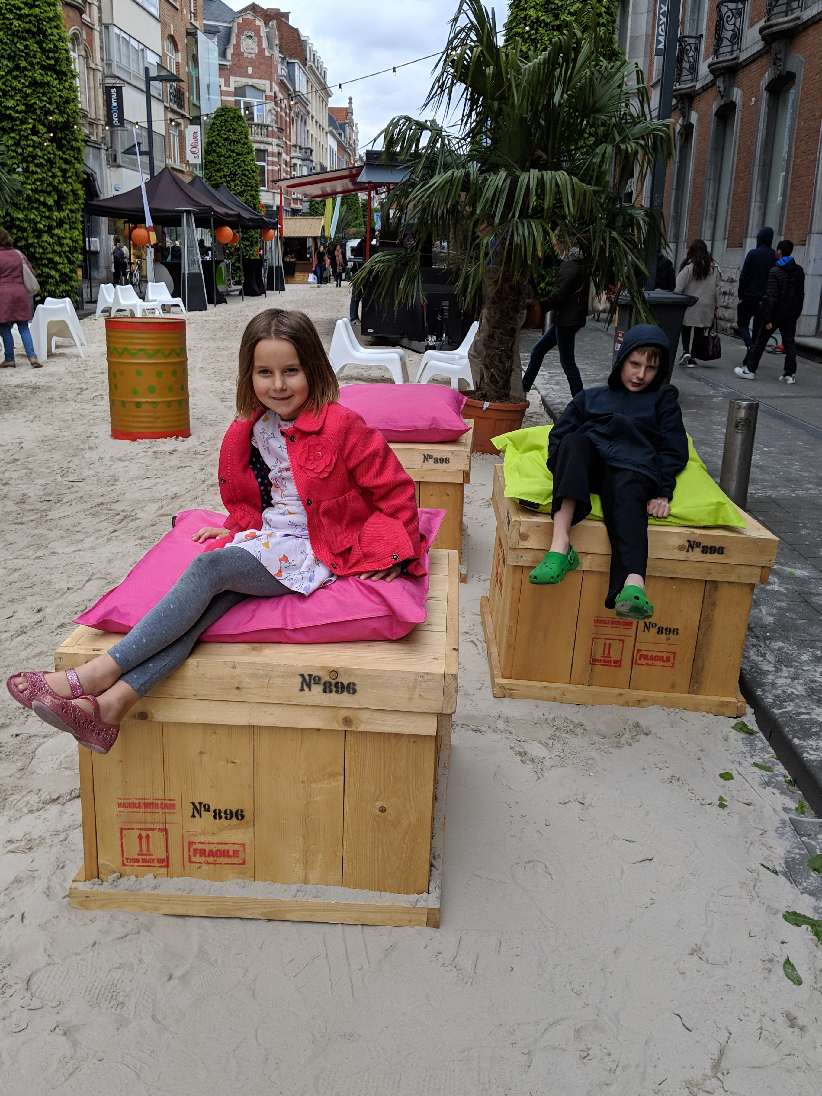 There was a street fair a couple of weeks ago. The idea was to encourage people to shop locally. The *tiny* little challenge is that all of the retail shops here close at 6:00 p.m. on weeknights. Only the restaurants and the grocery stores are open later, and even those close by 8:00 p.m. The street fair was amazing, though. They blocked off the main street for at least a kilometer. It’s the main thoroughfare for the buses, so it was a stark difference. There was even an entire block that was covered in SAND so they could make it look like a beach!