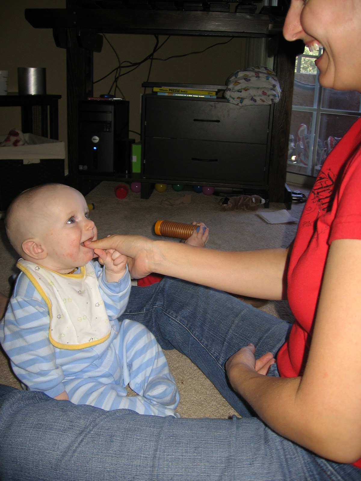 My friend, Marielk, brought her son, Christopher, to our Wednesday gathering this week. Marielk held Isaac for a little while. He really seems to like her. I am trying to get him used to being with other people. Next weekend, we are supposed to be leaving him with our friends Kyle and Mo for a couple of hours while Todd and I go out dancing with his parents. Hopefully, separation anxiety won’t have set in by then.