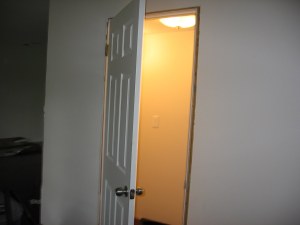 Today, Todd began work on the downstairs bath. He got the door hung, so there will be some privacy.