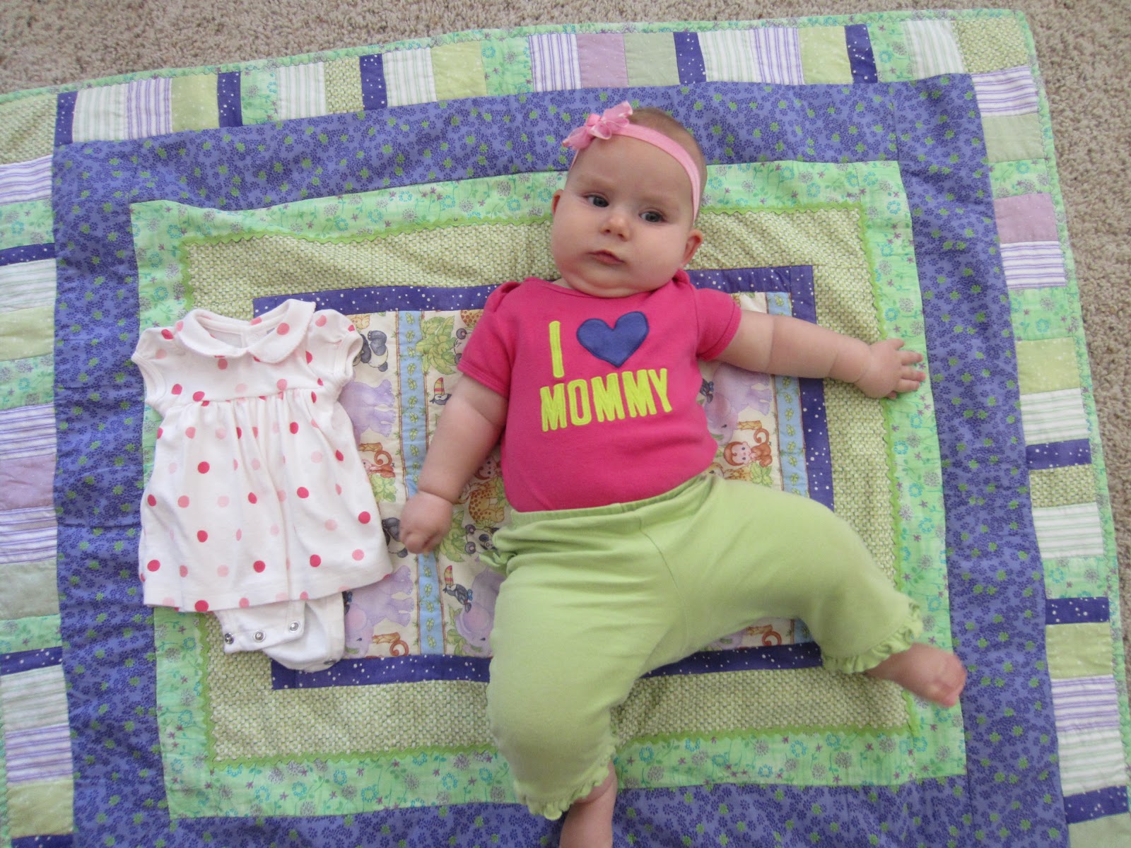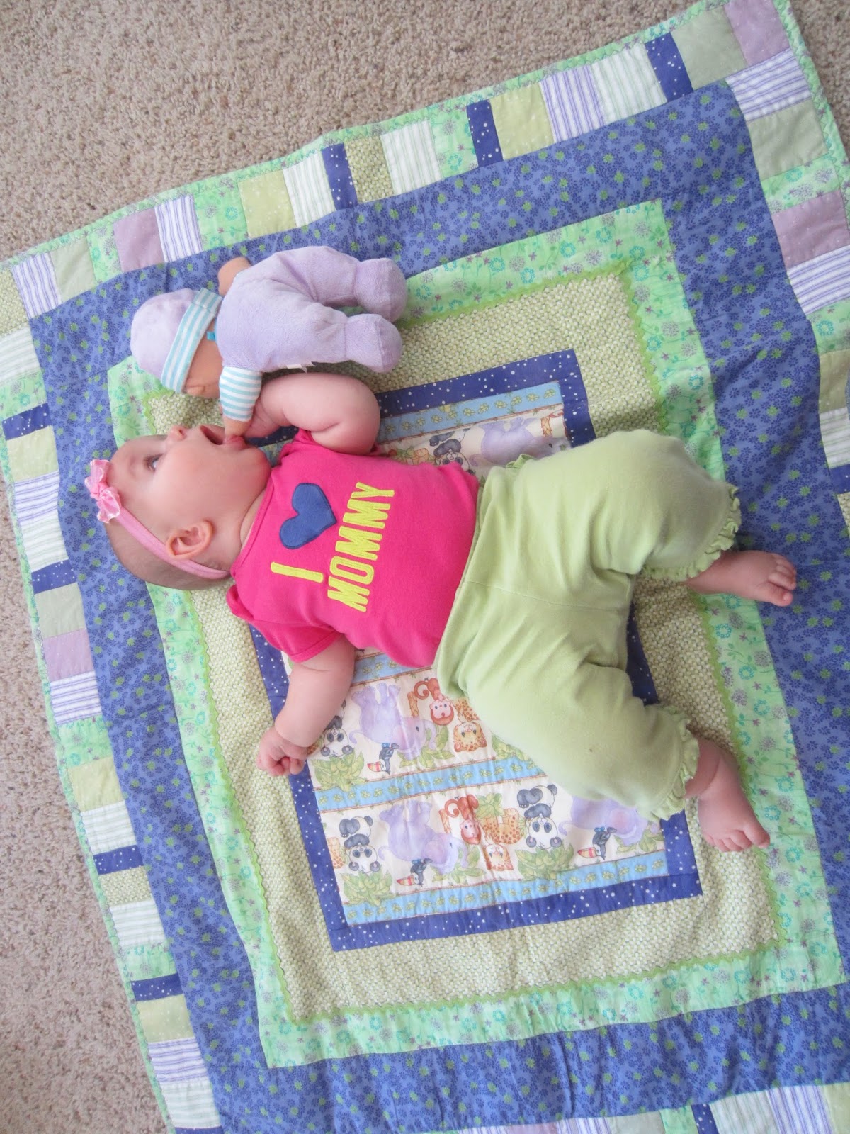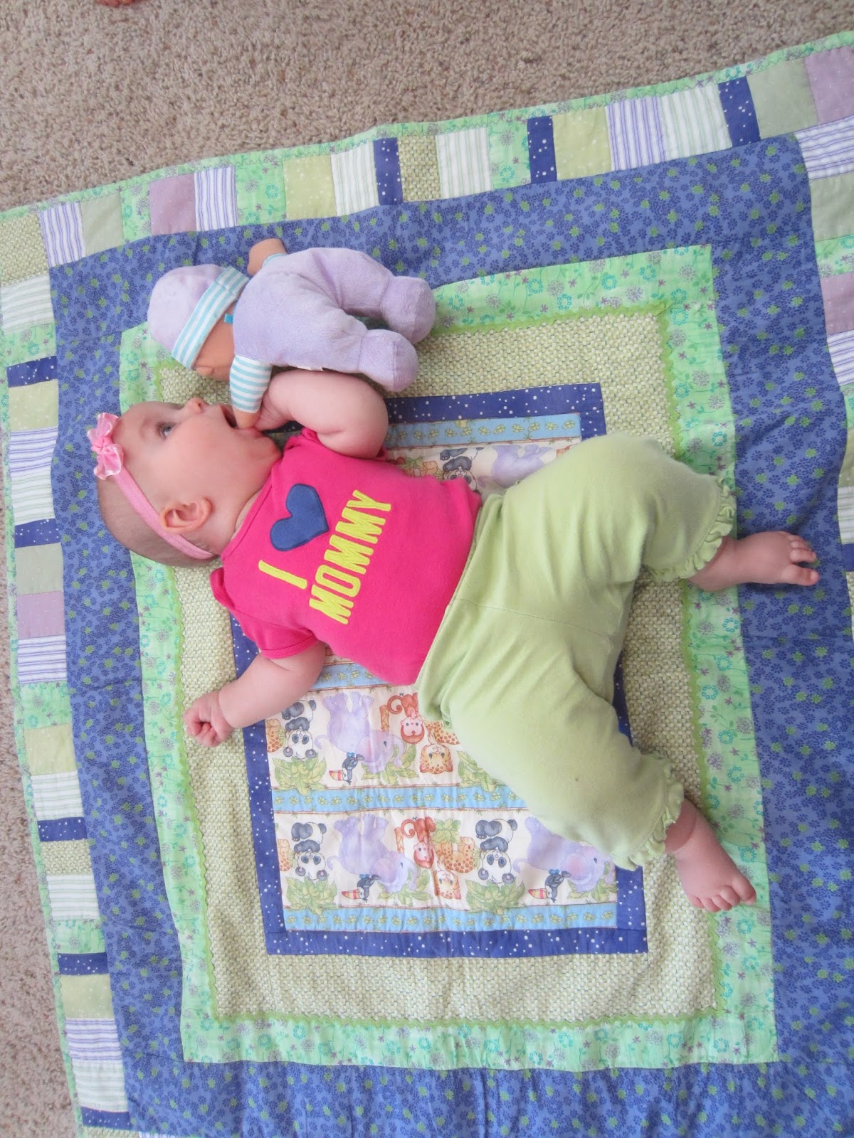 Twice today, Laine rolled over from her tummy to back and then continued to roll onto her back again. Dave and Judy, the fun part is that she always rolls in the same direction and it’s the OPPOSITE of the one Isaac rolled in! I will eventually capture it on video, but it might take me a few days…
