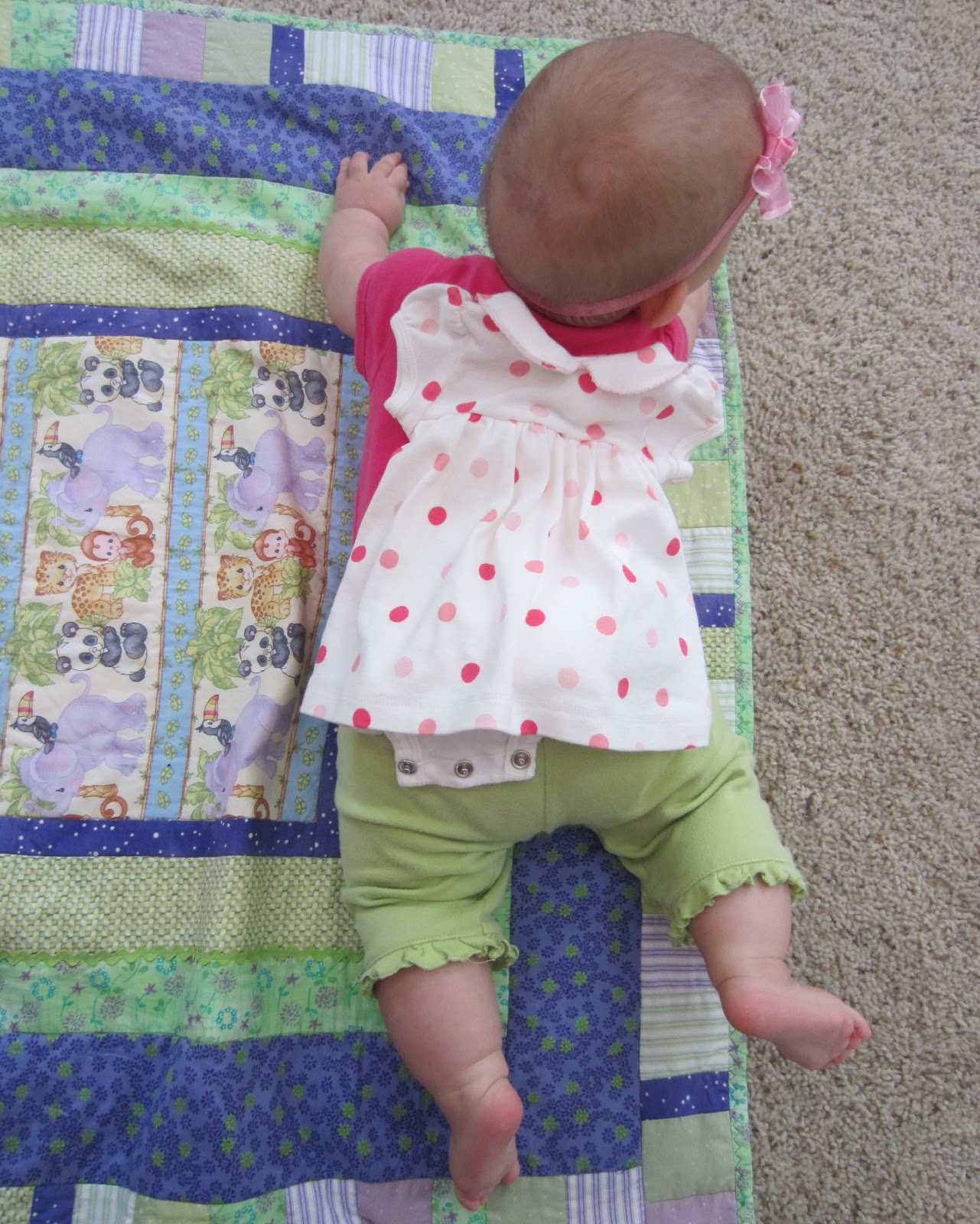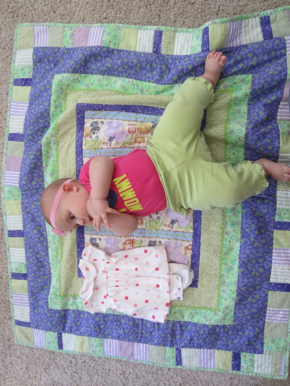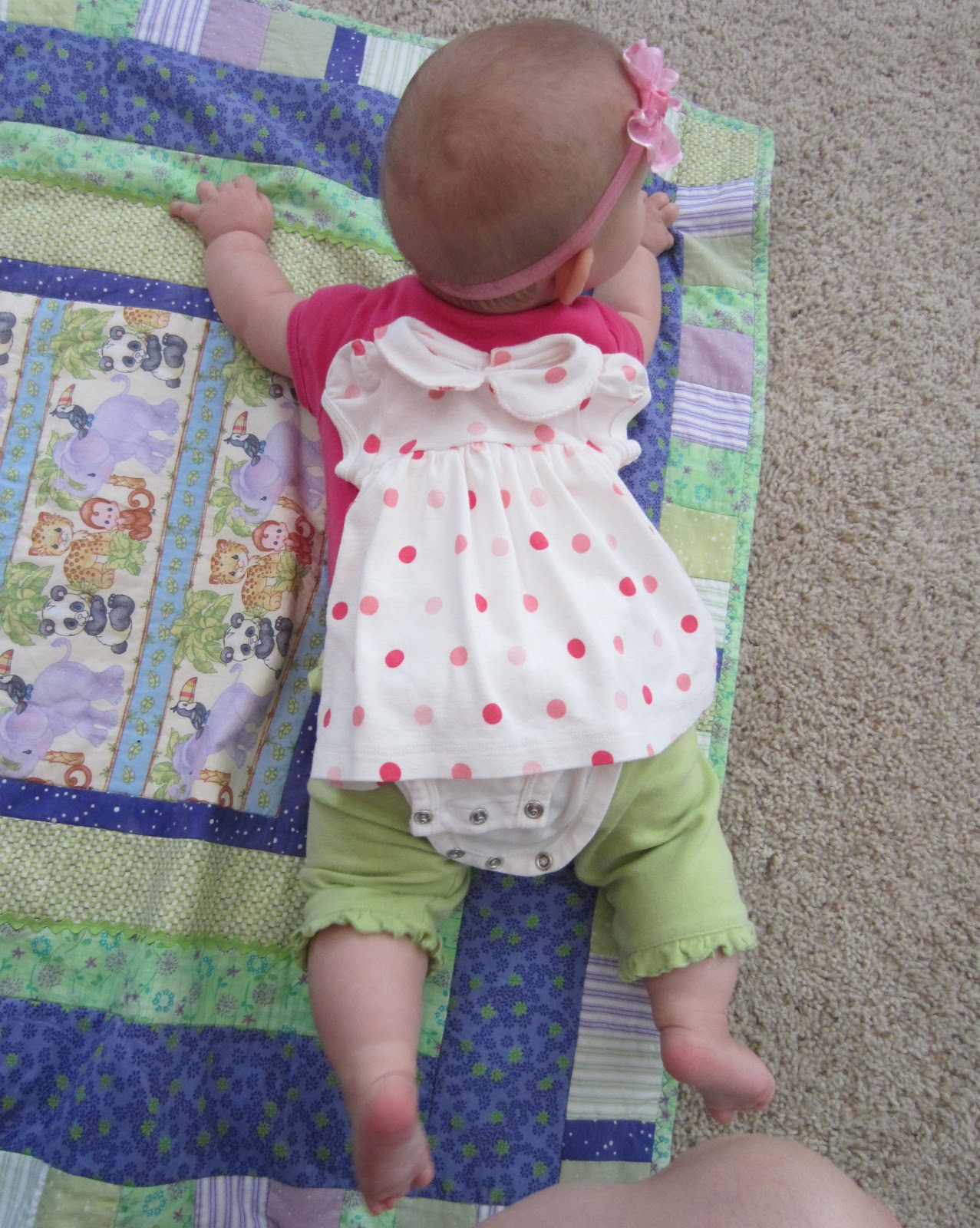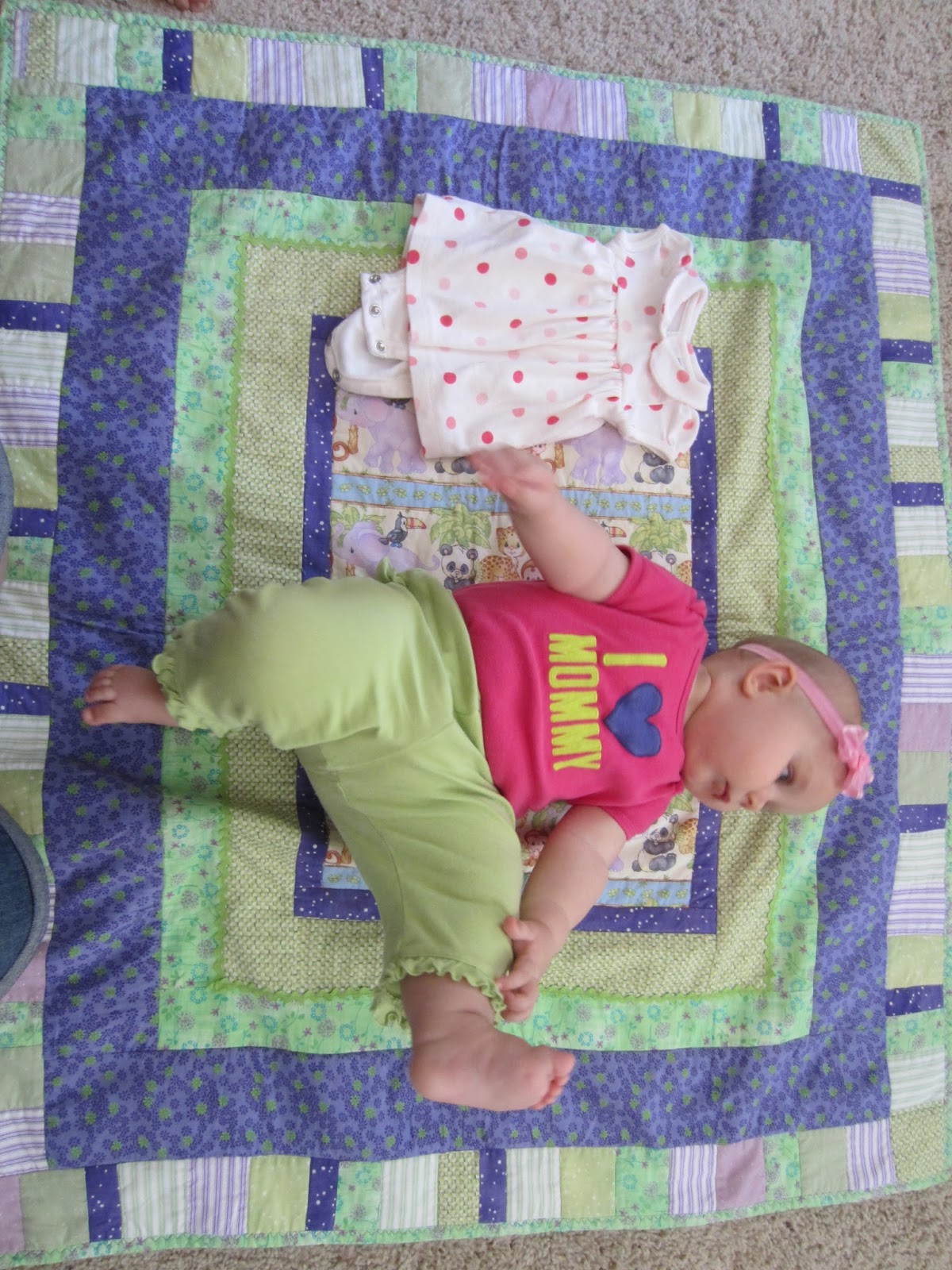 Twice today, Laine rolled over from her tummy to back and then continued to roll onto her back again. Dave and Judy, the fun part is that she always rolls in the same direction and it’s the OPPOSITE of the one Isaac rolled in! I will eventually capture it on video, but it might take me a few days…