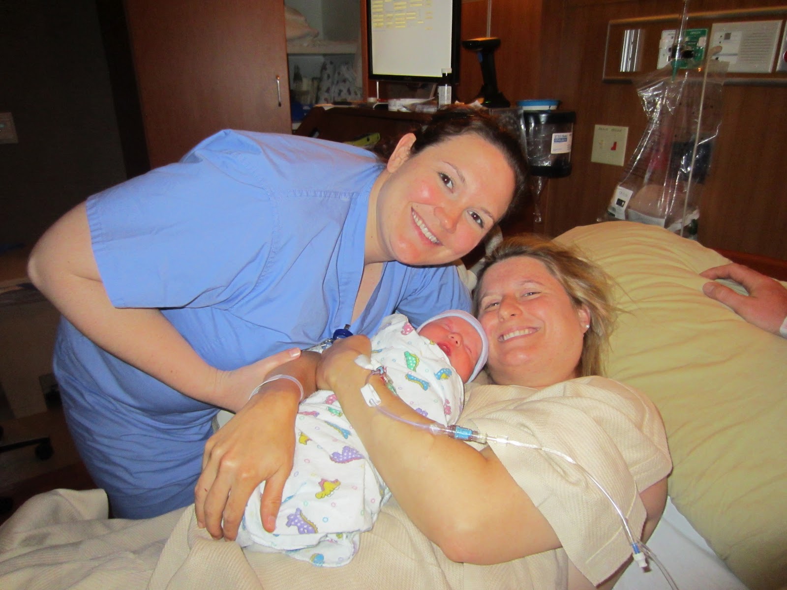 Saturday evening, around 6:15 or so, I texted our doula, Shelley, to let her know that I had a mild backache and was “leaking pinkish goo.” She said it could be very early contractions and I was probably just losing the rest of my mucous plug (because I’d lost part of it Thursday morning). She told me to try to rest and not think too much about it. That’s what I planned on doing. We ordered Chuy’s for dinner and the 5 of us (Todd, Todd’s parents, Isaac, and I) had dinner out on our front porch, which was WONDERFUL. Todd had been working on the roof and around the yard all day and was exhausted. We decided to get Isaac to bed and then crash, as well. After putting Isaac to bed, Todd and I laid down about 8:30. I texted Shelley at 8:18 to tell her that I was having mild contractions, but going to bed. Once we got into bed, I had 2 pretty strong contractions within about 15 minutes of one another. I asked Todd to call Shelley. It was 8:51. We asked her to head on over because I was having trouble managing the contractions. She’d already started putting stuff in a bag and said she would be there soon. She told us to call either Andrea (Dr. C) or Liane (midwife) to let them know that we weren’t ready to come in yet, but to put them on alert. I called Liane at 8:57 and had a contraction on the phone with her that I wasn’t able to talk through, so she was aware of our status. She got in touch with Andrea to tell her what was going on. Todd grabbed a few things to start loading the car and I decided to go downstairs with him so that I would be there when Shelley arrived. As we walked down the stairs, my water broke as we were two steps from the bottom. That was a feeling I won’t soon forget! I rushed into the bathroom and texted Liane, “…and my water just broke.” The time was 9:07 p.m. She promptly wrote back to send me to the hospital. I called my sister, Kristin, to talk me through another contraction (Todd was handing the baby monitor off to his parents and loading the car), and then called Shelley. Shelley said she would meet us at the hospital.