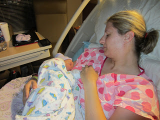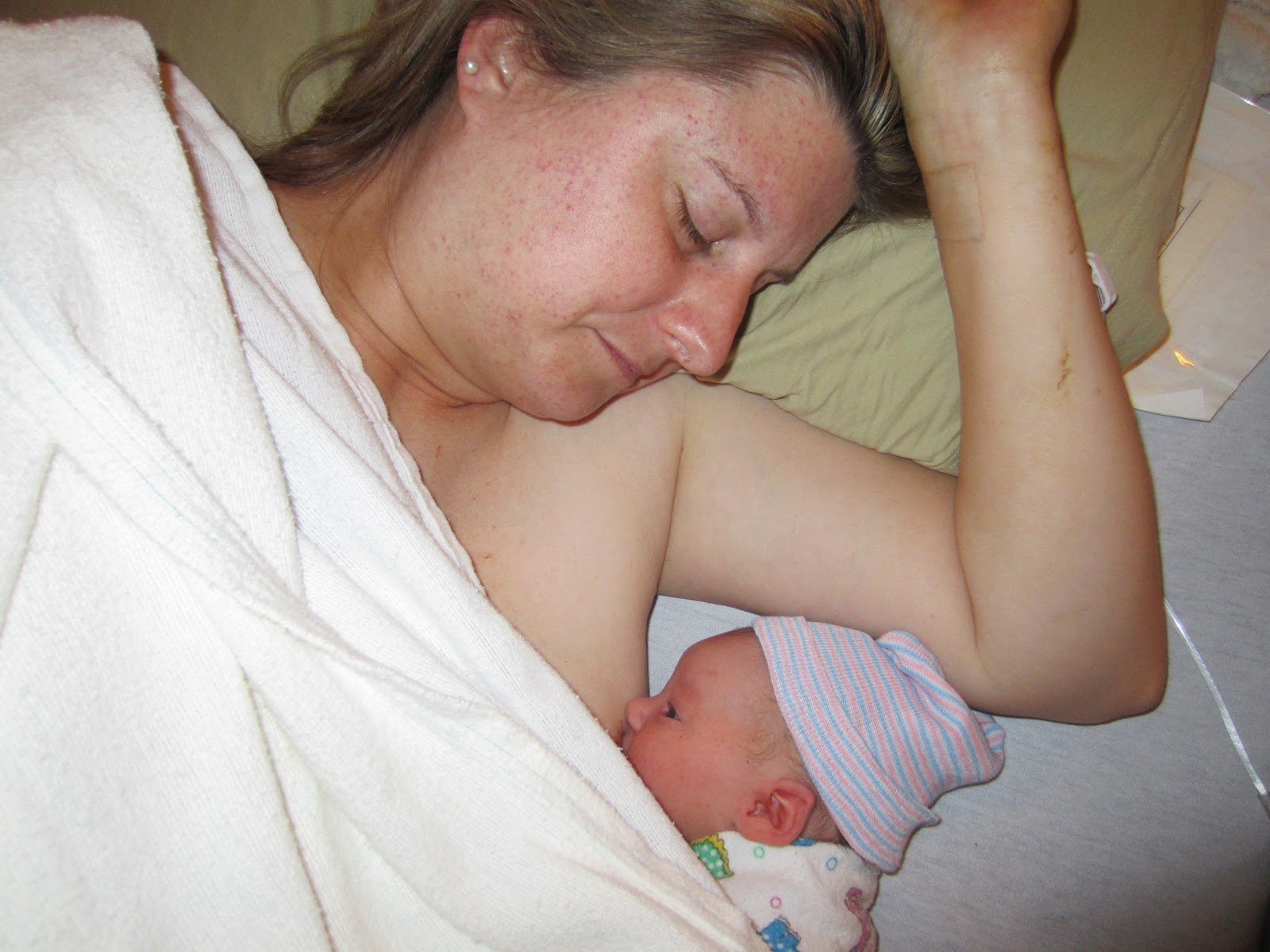 Laine getting her first snack. I look like hell, but I was really glad to meet my little one.
